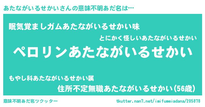 | 胡散臭い通販商品みたいなあだ名 | 『億万長者になれるブレスレット…その名も「あたながいるせかい」』 |