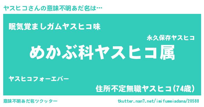 | 男性向けラノベタイトル風あだ名 | 『ヤスヒコスレイヤー』 |