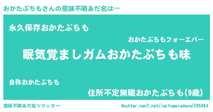 | 男性向けラノベタイトル風あだ名 | 『おかたぶちもに滅ぼされるだけの簡単なお仕事です』 |