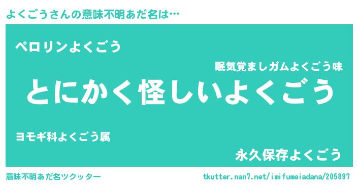 | ポケモン風あだ名 | 『ヒヨクゴウ』『ヨクチュウ』 |