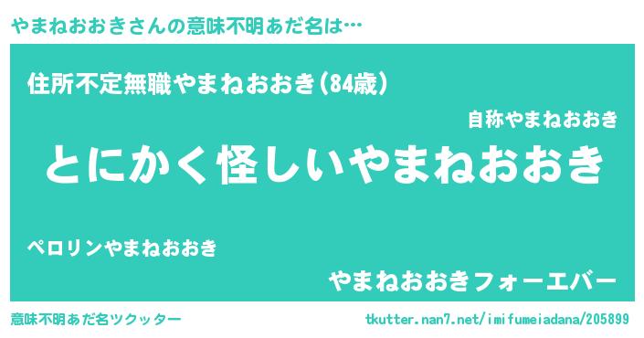 | ポケモン風あだ名 | 『ヒヤマネオオキ』『ヤーマイ』 |