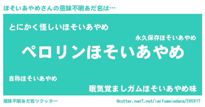 | 伝説のあだ名 | 『封印されしスナイパーほそいあやめ』 |