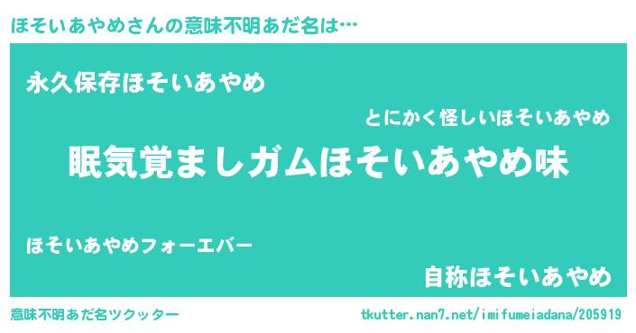 | ヒーロー風カッコイイあだ名 | 『正義の使者ほそいあやめ』 |
