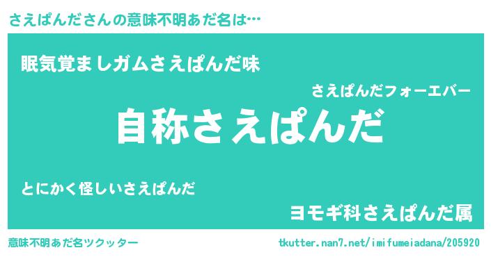 | ヒーロー風カッコイイあだ名 | 『サイバー戦士サエパンダ』 |