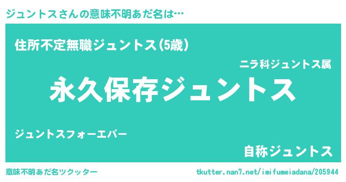| 女子向けラノベタイトル風あだ名 | 『異世界で失敗しない100のジュントス』 |