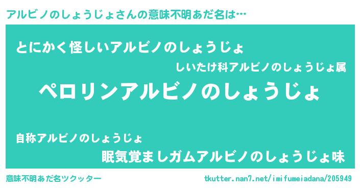 | ヒーロー風カッコイイあだ名 | 『スーパーアルビノノショウジョ』 |