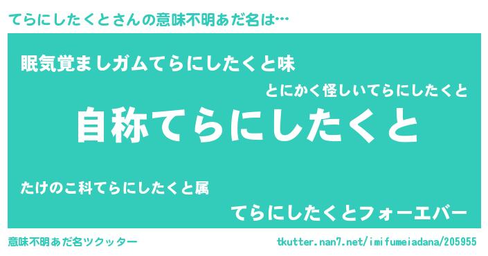| 欧米人風あだ名 | 『ケンブリッジてらにしたくと』 |