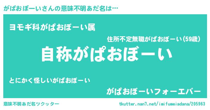 | 胡散臭い通販商品みたいなあだ名 | 『芸能人もオススメする高麗人参…その名も「がぱおぼーい」』 |