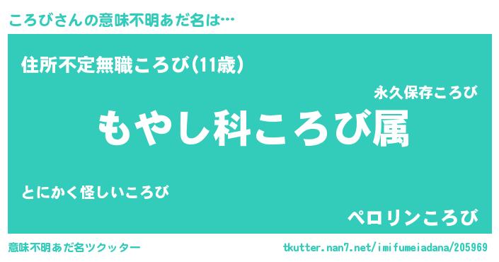 | ヒーロー風カッコイイあだ名 | 『仮面コロダー』『スーパーコロビ』 |