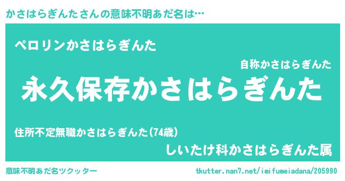 | ヘコむあだ名 | 『かさはらぎんた(遠い目)』『かさもー』 |