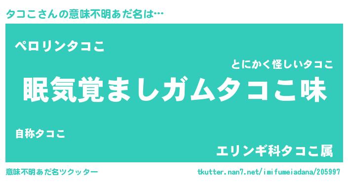 | ヒーロー風カッコイイあだ名 | 『慈愛の使者タコこ』『スーパータココ』 |