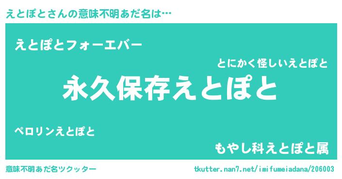 | ヒーロー風カッコイイあだ名 | 『ネオエトポト』『ウルトラえとぽとマン』 |