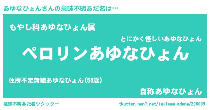 | 男性向けラノベタイトル風あだ名 | 『あゆなひょんの憂鬱』 |