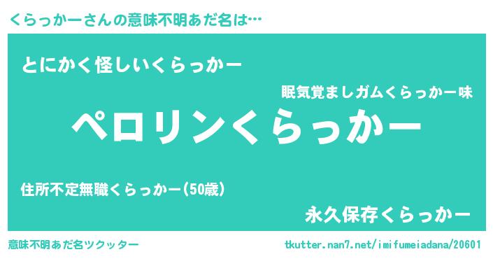 | 胡散臭い通販商品みたいなあだ名 | 『億万長者になれる霊験あらたかなお札…その名も「くらっかー」』 |