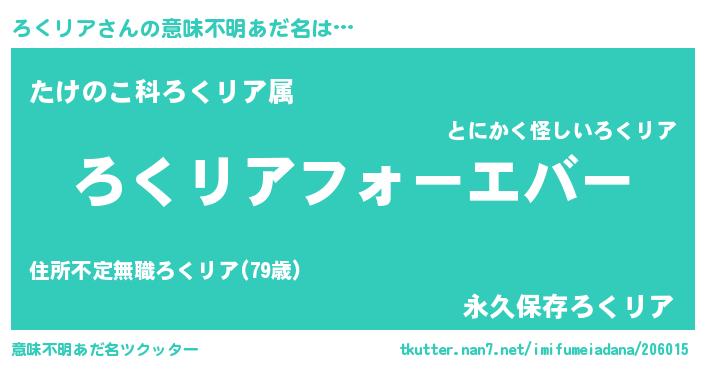 | 欧米人風あだ名 | 『アンジェラ・ろくリア』 |