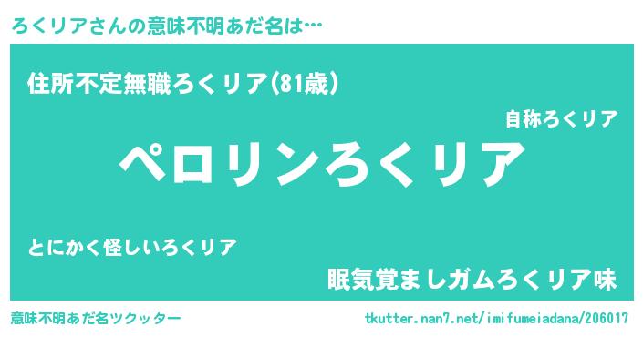 | 胡散臭い通販商品みたいなあだ名 | 『必ず成功する水晶球…その名も「ろくリア」』 |