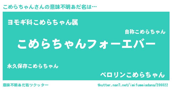 | 男性向けラノベタイトル風あだ名 | 『やはりこめらちゃんの青春ラブコメはまちがっている 』 |