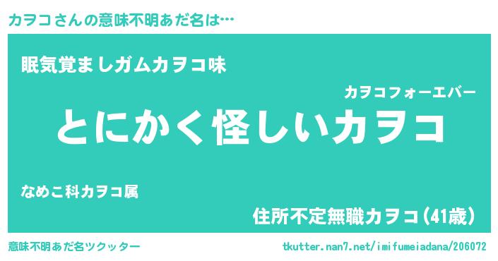| ピコ太郎風あだ名 | 『カヲ八郎』『カカ太郎』『ピカ一郎』 |