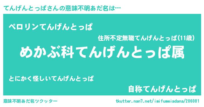 | 欧米人風あだ名 | 『アンジェラ・てんげんとっぱ』 |