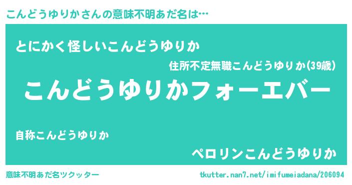 | ファンタジー風あだ名 | 『エターナルコンドウユリカー』 |
