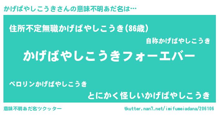 | 胡散臭い通販商品みたいなあだ名 | 『運命の人と巡り会える高級そうな壺…その名も「かげばやしこうき」』 |