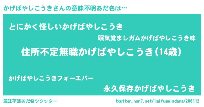 | 欧米人風あだ名 | 『ダレノガレかげばやしこうき』 |