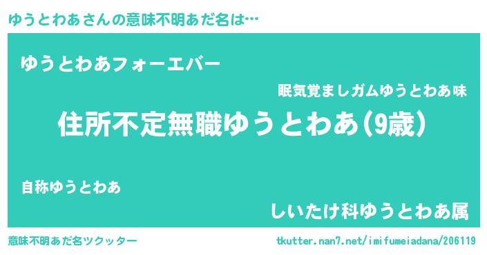 | 欧米人風あだ名 | 『ゆうとわあ・ステッグマイヤー』 |