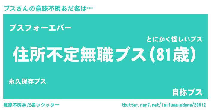 | 胡散臭い通販商品みたいなあだ名 | 『あなたにだけ特別に提供する世界で10本だけ現存している希少なブランデー…その名も「ブス」』 |
