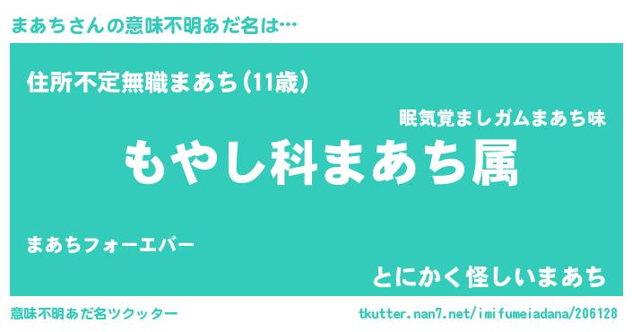 | 男性向けラノベタイトル風あだ名 | 『転生したらまあちだった件』 |