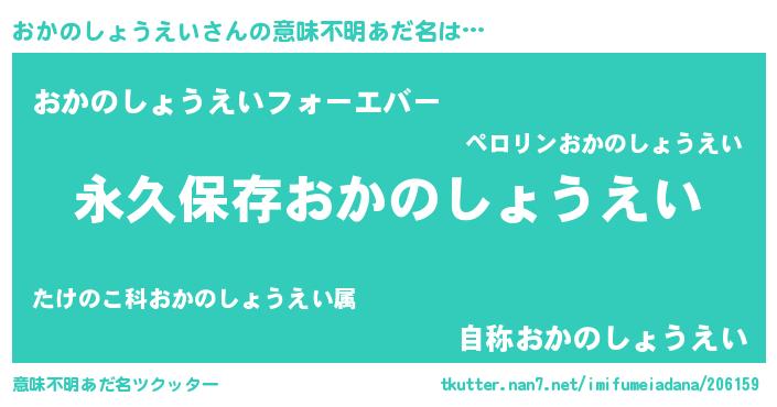 | 男性向けラノベタイトル風あだ名 | 『おかのしょうえいという概念が存在しない退屈な世界 』 |