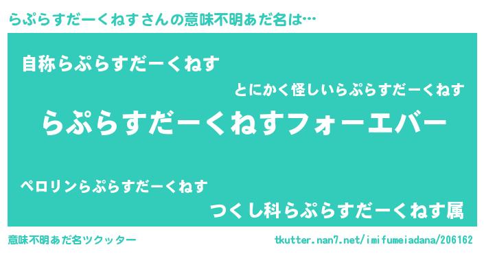 | 欧米人風あだ名 | 『らぷらすだーくねすクリステル』 |