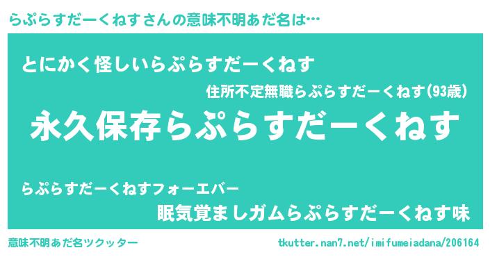 | ヘコむあだ名 | 『らぷらすだーくねす(震え声)』『らぷっぺ』 |