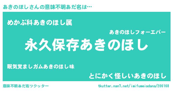 | ヘコむあだ名 | 『あきのほし(笑)』『あきぷりん』 |