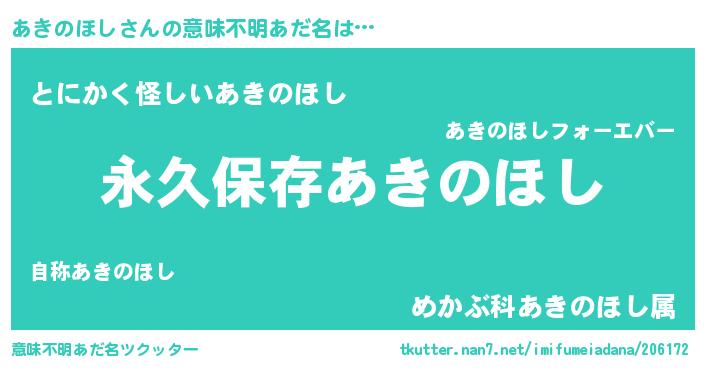 | 胡散臭い通販商品みたいなあだ名 | 『来世でも幸せになれる健康食品…その名も「あきのほし」』 |