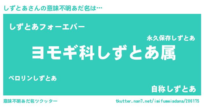 | ヒーロー風カッコイイあだ名 | 『ウルトラしずとあマン』『ネオシズトア』 |
