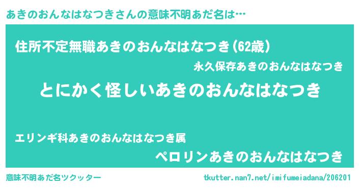 | 胡散臭い通販商品みたいなあだ名 | 『全米が絶賛したサプリメント…その名も「あきのおんなはなつき」』 |