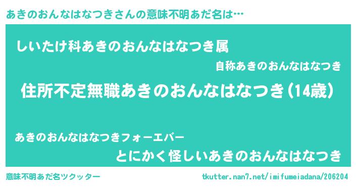 | 男性向けラノベタイトル風あだ名 | 『この素晴らしい世界にあきのおんなはなつきを!』 |
