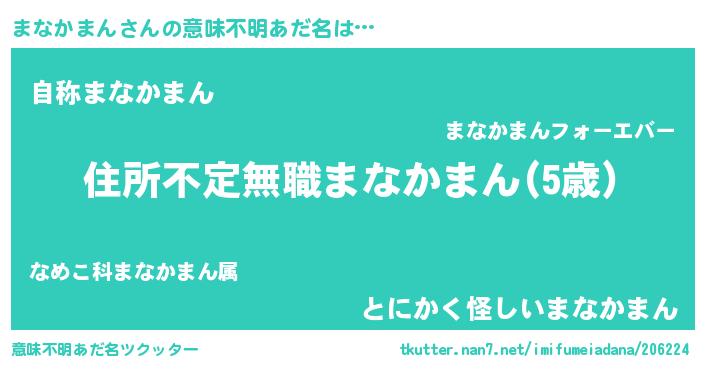 | 男性向けラノベタイトル風あだ名 | 『この素晴らしい世界にまなかまんを!』 |