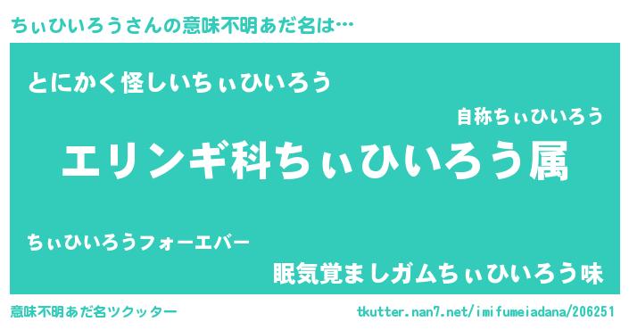 | 胡散臭い通販商品みたいなあだ名 | 『信頼と実績のサプリメント…その名も「ちぃひいろう」』 |