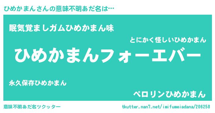 | ヒーロー風カッコイイあだ名 | 『ウルトラひめかまんマン』 |