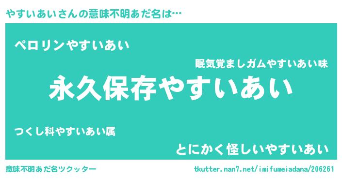 | 胡散臭い通販商品みたいなあだ名 | 『絶対に幸福をもたらす健康食品…その名も「やすいあい」』 |