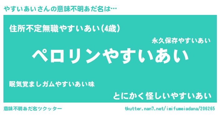 | 男性向けラノベタイトル風あだ名 | 『やすいあいの憂鬱』 |
