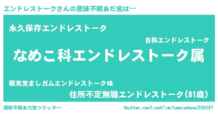 | ヒーロー風カッコイイあだ名 | 『ネオエンドレストーク』『仮面エンダー』 |