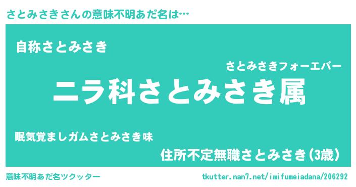 | 肩書あだ名 | 『さとみさき少将』『さとみさき総統』 |