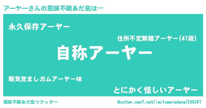 | 女子向けラノベタイトル風あだ名 | 『アーヤーなんてお断りですっ。』 |