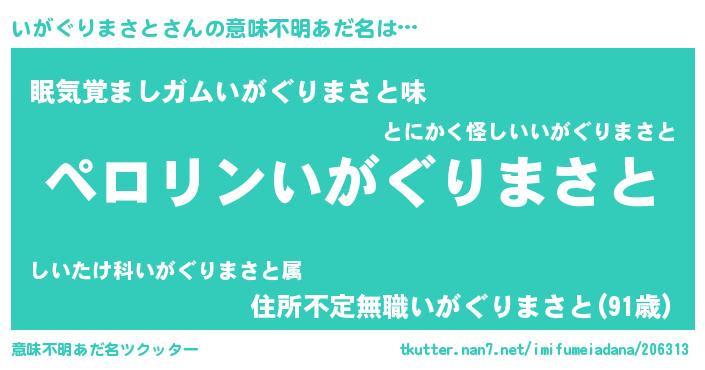 | ピコ太郎風あだ名 | 『イコ八郎』『イイ太郎』『イガ十郎』 |