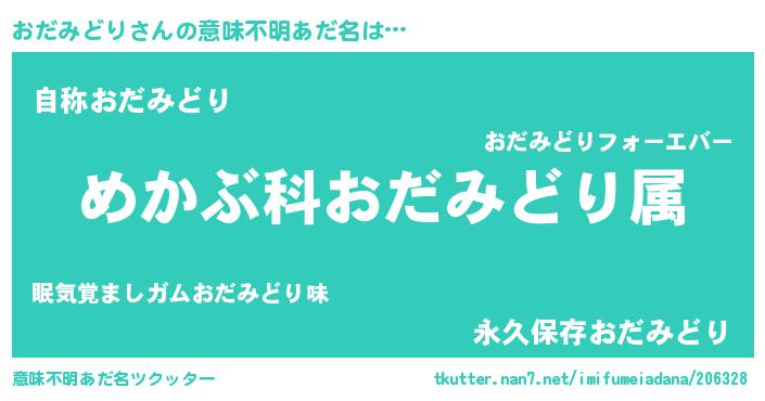ヘコむあだ名 | 『おだみどり(小並感)』『レバニラ』 |