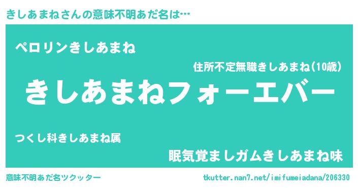 男性向けラノベタイトル風あだ名 | 『きしあまねに滅ぼされるだけの簡単なお仕事です』 |
