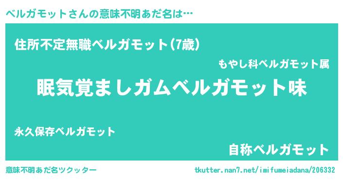 男性向けラノベタイトル風あだ名 | 『うちのベルガモットが世界を掌握している!』 |