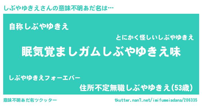 | ヒーロー風カッコイイあだ名 | 『慈愛の使者しぶやゆきえ』 |
